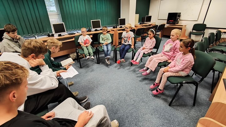 Dnes naši deváťáci na chvíli odložili učebnice a stali se pohádkovými vypravěči.